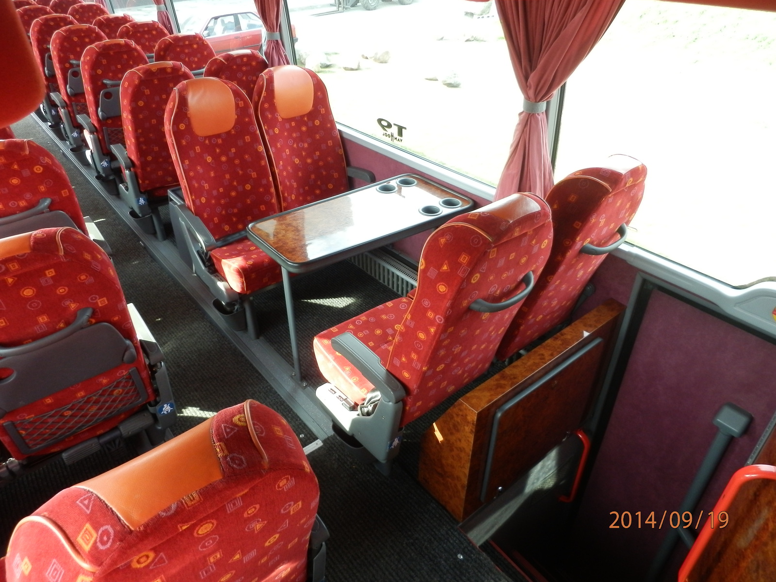 Buss on 13.2m pikk, tavapärasest pisut vähemate reisijakohtadega – 46, kuid see võimaldab suuremaid istmete vahesid, seega reisiseltskonnale lahedamat ja mugavamat olemist.Istmeid saab liigutada ka külgsuunas.